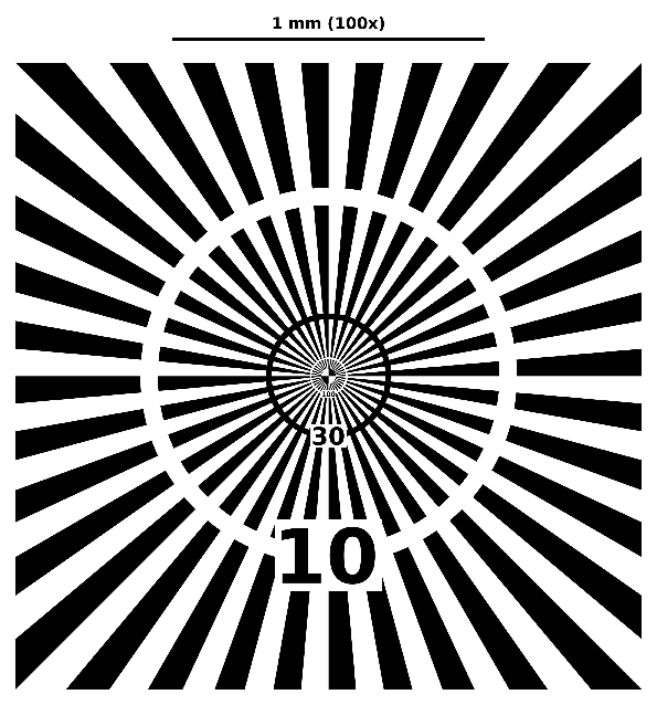 Der Siemensstern wurde in den 1930er Jahren von der Siemens AG (damals Siemens & Halske AG) entwickelt. Mit diesem Testmuster kann die Qualität optisch abbildender Systeme überprüft werden.